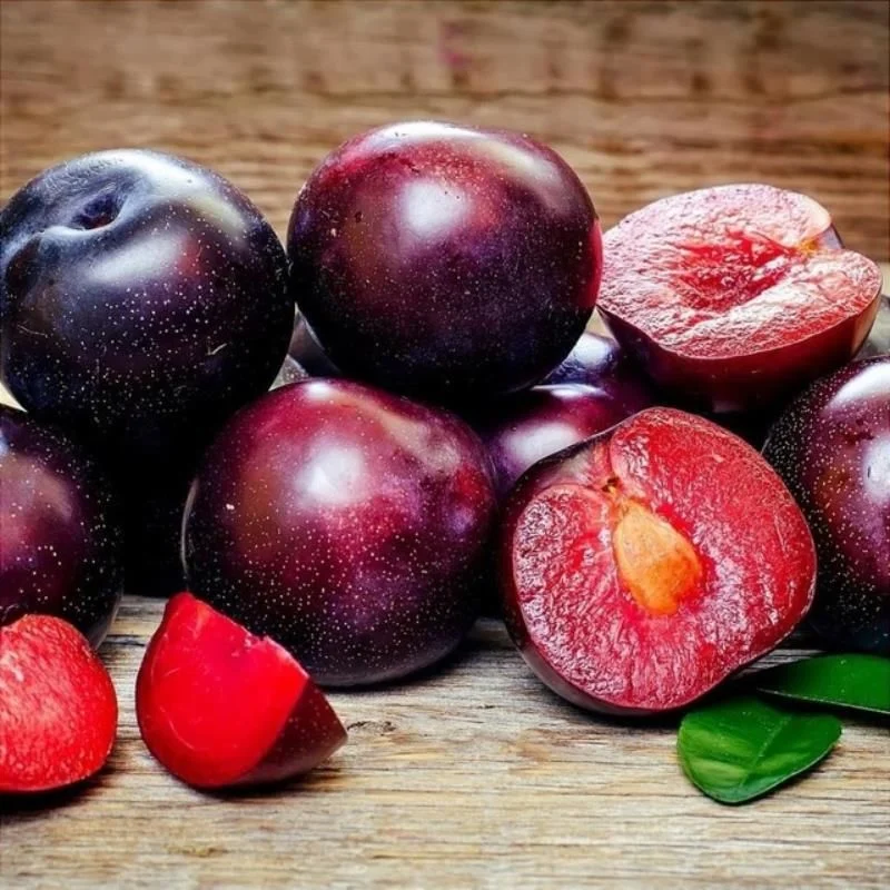 Meyve orta irilikte ve kenarlardan yassılaşmış şekildedir. Deri rengi mavi-siyah ile sırt kısmında kırmızımsı- kahverengidir.